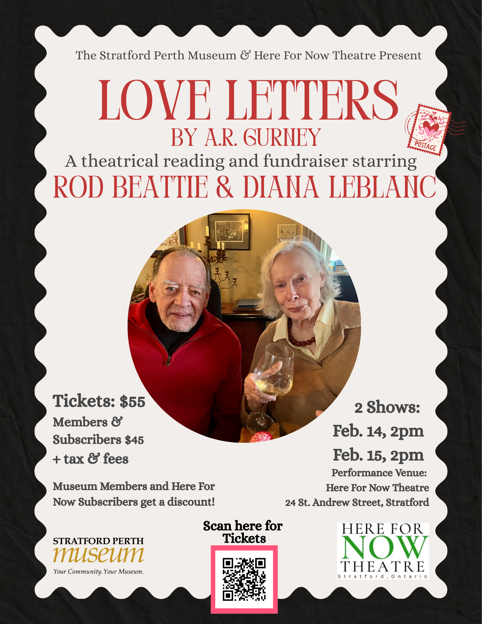 This licensed event is a co-fundraiser for the Stratford Perth Museum and Here For Now Theatre, supporting live performance, storytelling, and shared cultural heritage in our community.